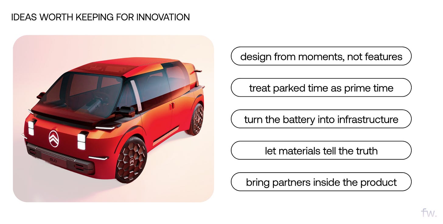 What a compact EV concept reveals about scenario-driven design and parked utility